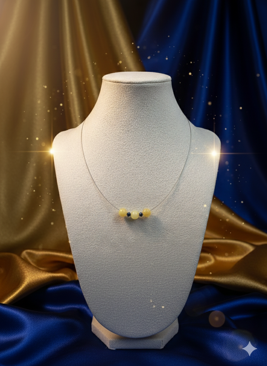 Ένα κομψό και ενεργειακά πανίσχυρο κολιέ, σχεδιασμένο για να αποτελέσει τον προσωπικό σας μαγνήτη ευημερίας. Ο συνδυασμός του φυσικού Κιτρίνη και του Μπλε Χρυσόλιθου σε ατσάλινο σύρμα, δημιουργεί ένα κόσμημα που ισορροπεί ανάμεσα στην υλική επιτυχία και την πνευματική καθοδήγηση.