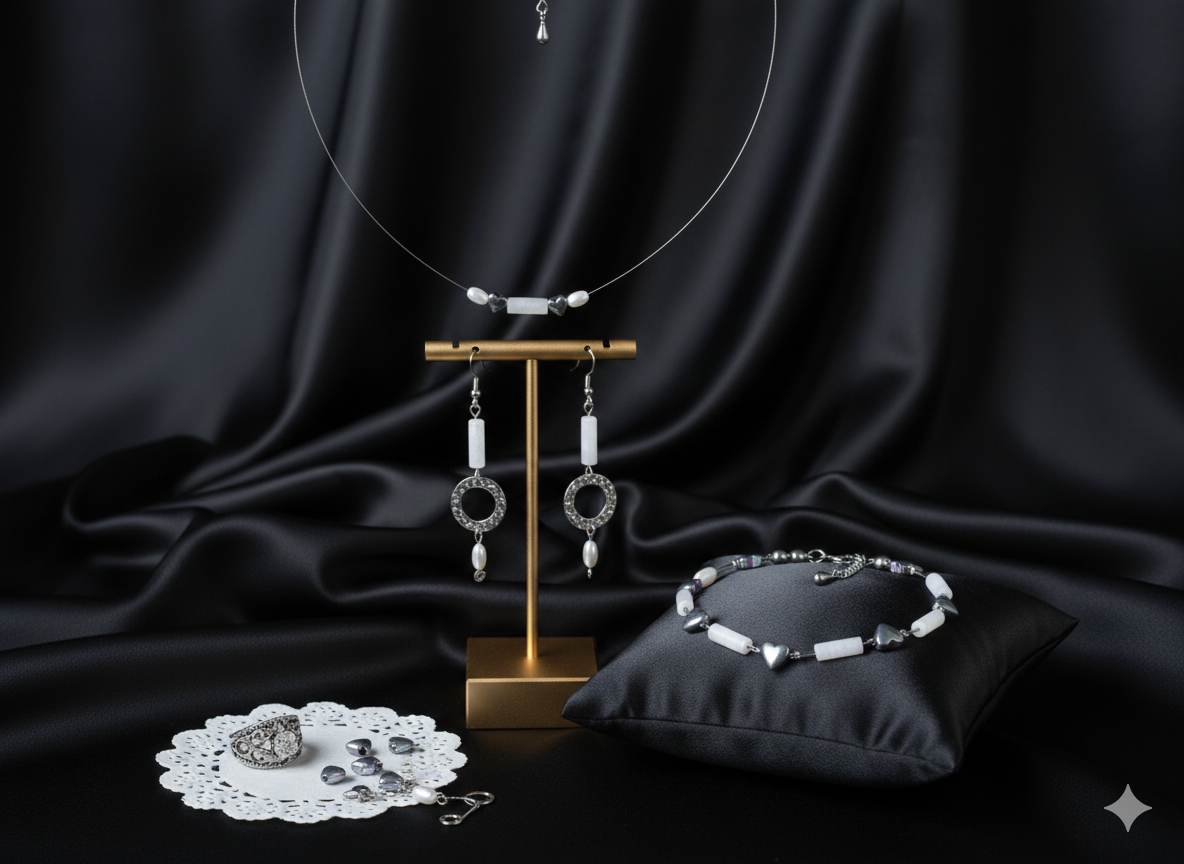 Ανακαλύψτε το σετ κοσμημάτων που συνδυάζει την αψεγάδιαστη καθαρότητα με την ατσαλένια δύναμη των συναισθημάτων. Σχεδιασμένο για να ενισχύει την αγάπη, την ειλικρίνεια και την προστασία, αυτό το χειροποίητο κολιέ και τα σκουλαρίκια αποτελούν τον ιδανικό σύντροφο για όσους αναζητούν ουσιαστικές σχέσεις και εσωτερική γαλήνη.