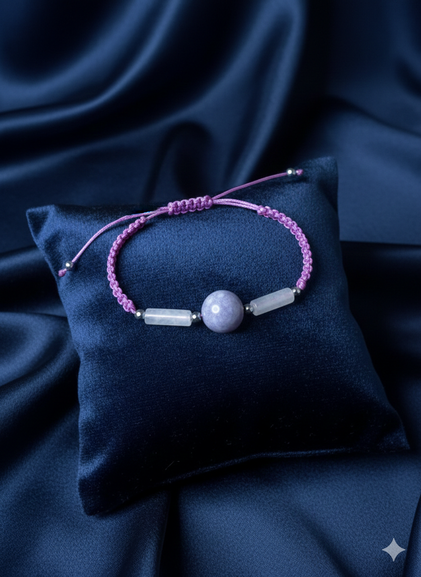 Ένα κόσμημα φτιαγμένο για αυτούς που προσέχουν τη λεπτομέρεια. Η κεντρική σφαίρα αγγελίτη μαγνητίζει το βλέμμα, ενώ οι πινελιές αιματίτη των 3 χιλιοστών προσθέτουν μια luxury μεταλλική αίσθηση που ολοκληρώνει το σύνολο. Το έντονο ροζ κορδόνι δίνει τον απαραίτητο “τούμπανο” χαρακτήρα, κάνοντας το βραχιόλι το απόλυτο statement piece.